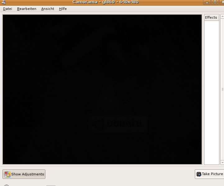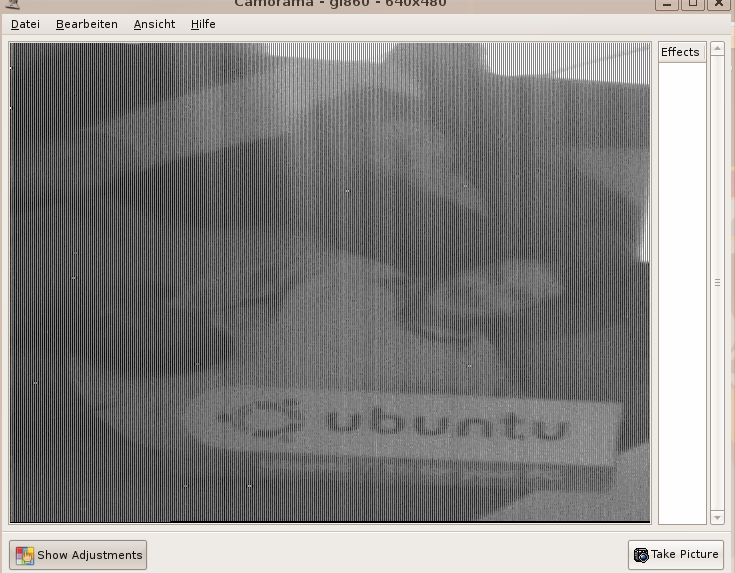 hm, that looks interresting, the screen is jittering and very dark so one could think there is nothing but on some starts of camorama and when paying much attention i can see me as a repeating pattern and it seemes to be the full viewport this time, also i saw lots of bufferowerflows in dmesg and messeges a la “gl860: VIDIOCMCAPTURE format=4 (r3_5 r2_4 u_9 y_8)”